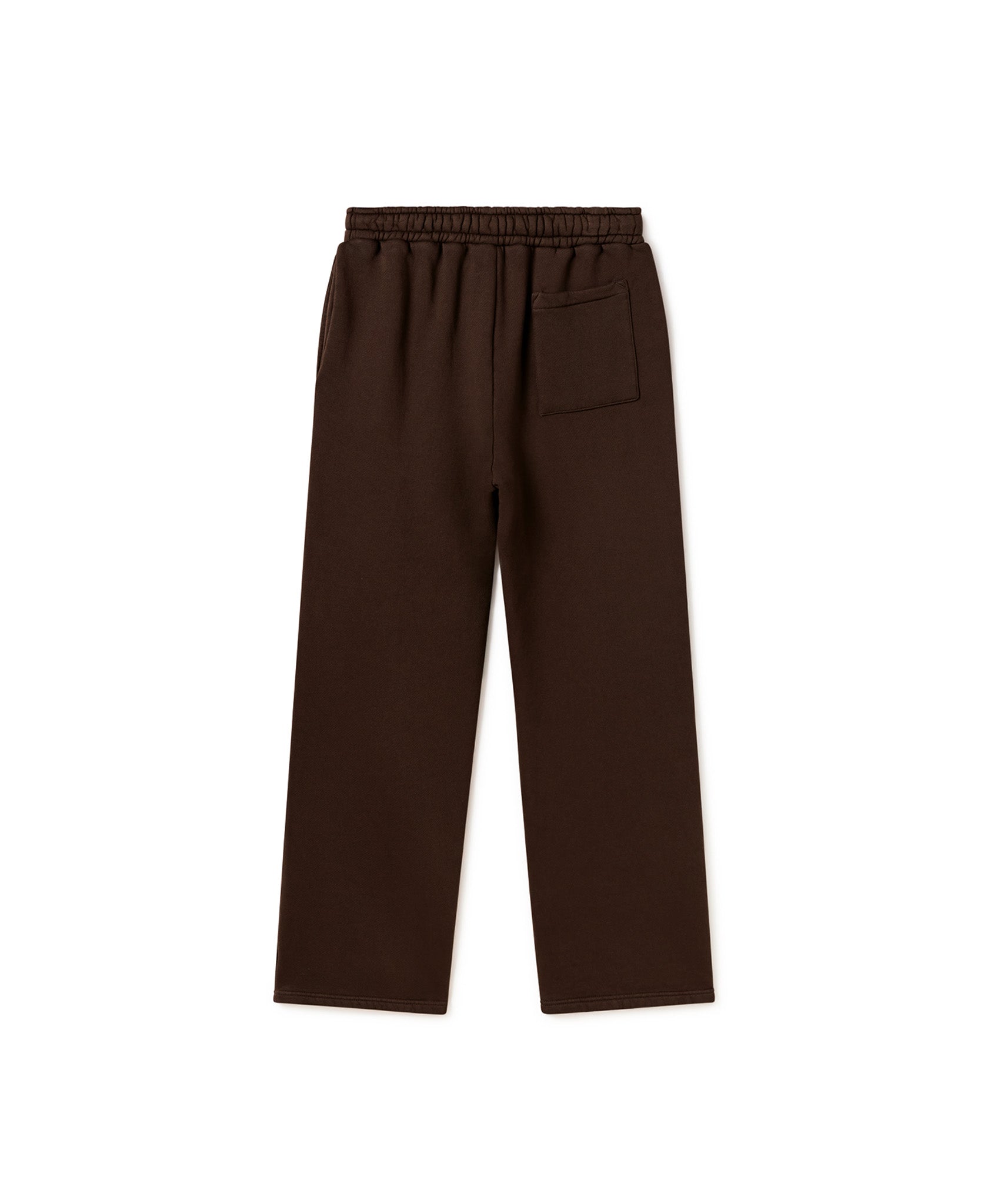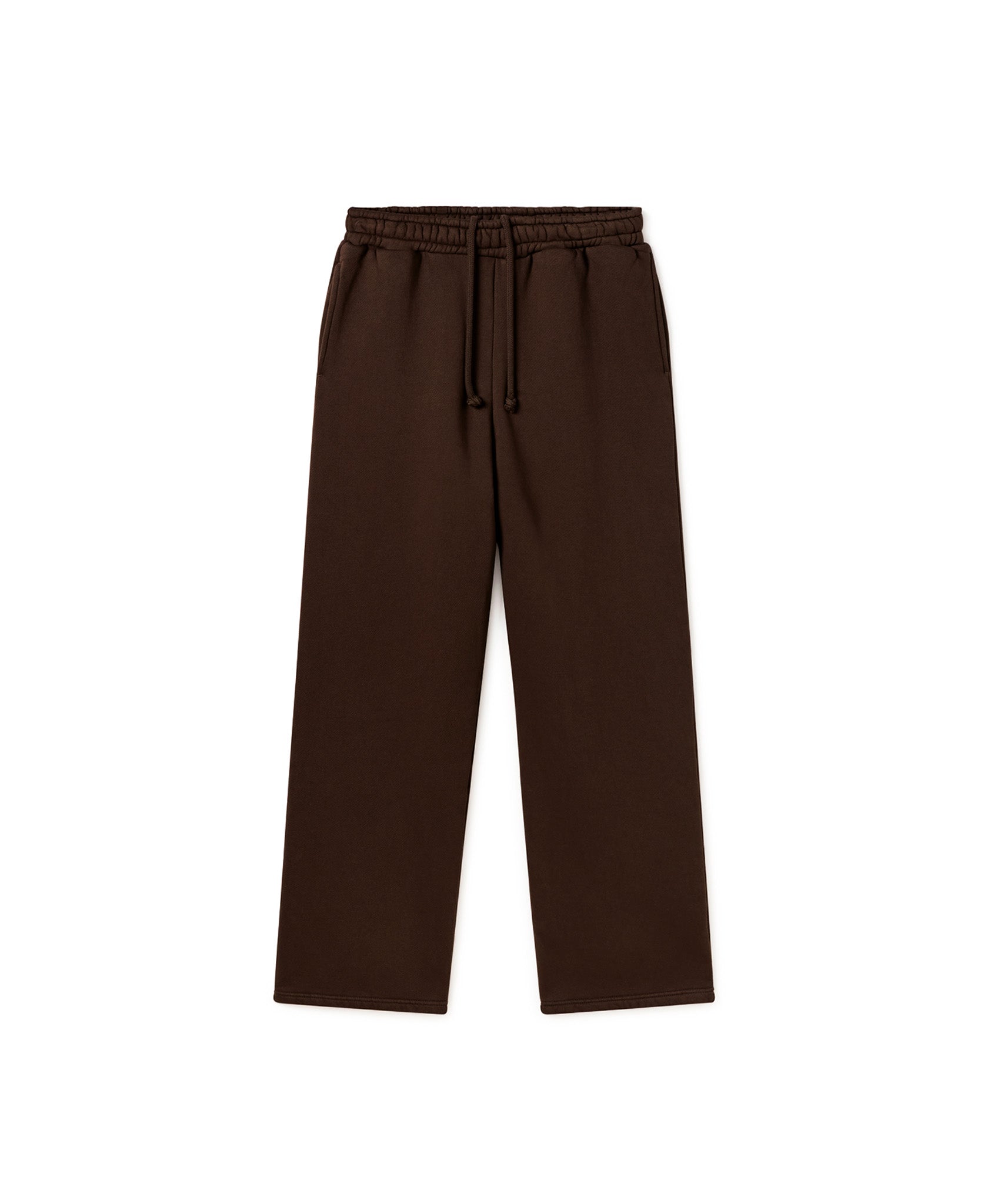 Crafted from 450gsm loopback cotton in a relaxed straight-leg style, these pants feature a distinctive highlight: wide flat cotton drawcords in brown.